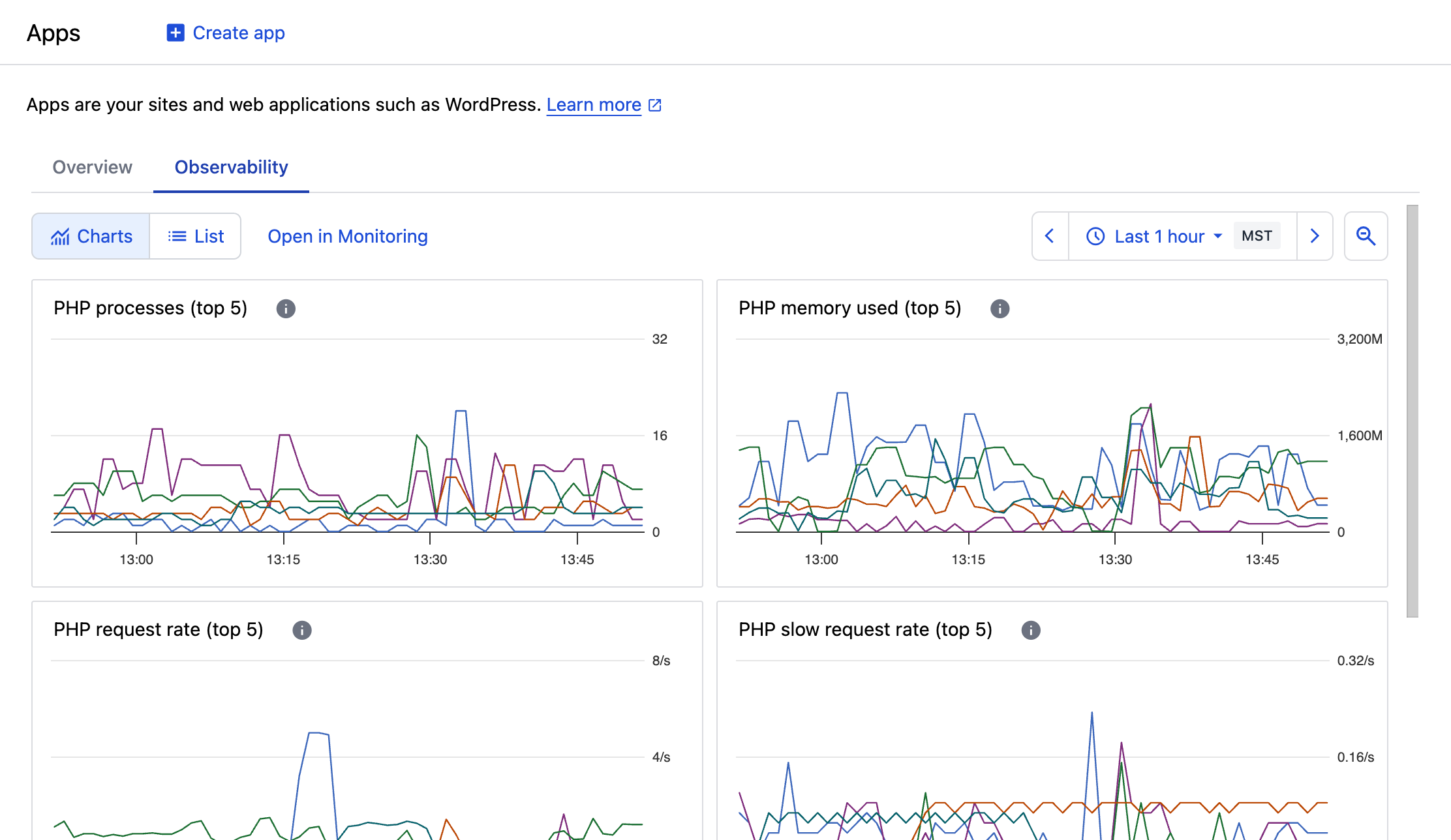 To view metrics for all apps: