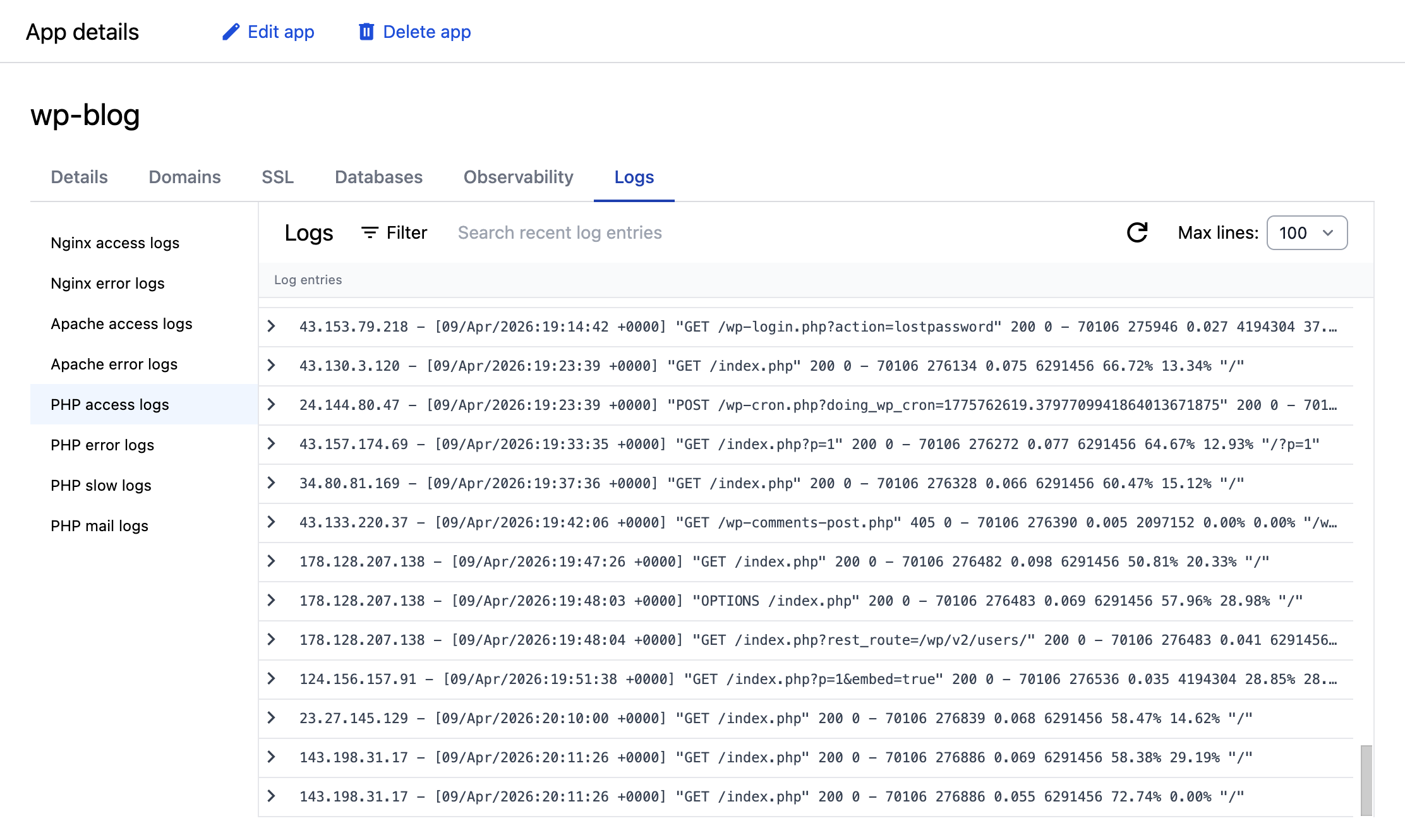 Using an SSH or SFTP client, you can log into your server as an app’s system user to view or modify the app’s files.